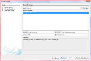 On the next tab, enter the group-id net.java.truevfs, the artifact-id truevfs-archetype-access, the version 0.9.1