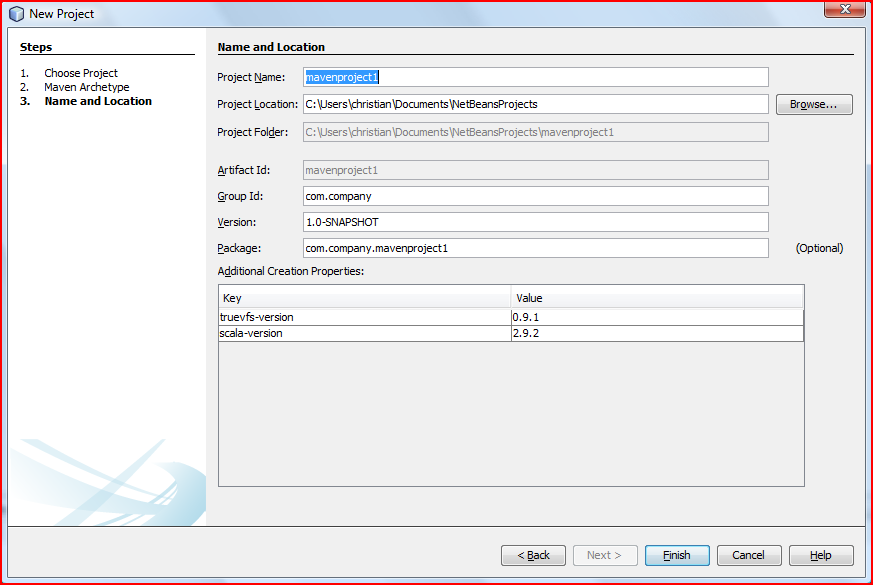 cd C:\Users\christian\Documents\NetBeansProjects; JAVA_HOME=C:\\Program Files\\Java\\jdk1.7.0_07 M2_HOME=C:\\Program Files\\Apache Software Foundation\\apache-maven-3.0.4 \C:\\Program Files\\Apache Software Foundation\\apache-maven-3.0.4\\bin\\mvn.bat\ -DarchetypeGroupId=net.java.truevfs -DarchetypeArtifactId=truevfs-archetype-access -DarchetypeVersion=0.9.1 -DarchetypeRepository=local -DgroupId=com.company -DartifactId=mavenproject1 -Dversion=1.0-SNAPSHOT -Dpackage=com.company.mavenproject1 -Dbasedir=C:\\Users\\christian\\Documents\\NetBeansProjects -Dtruevfs-version=0.9.1 -Dscala-version=2.9.2 -Darchetype.interactive=false --batch-mode archetype:generate<br />Scanning for projects...